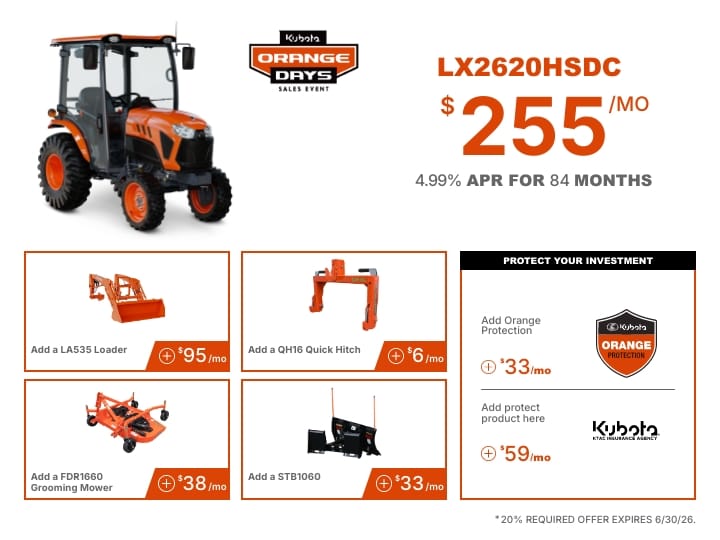 TAKE ADVANTAGE OF OUR EXCLUSIVE OFFERS ON SELECT KUBOTA PRODUCTS.